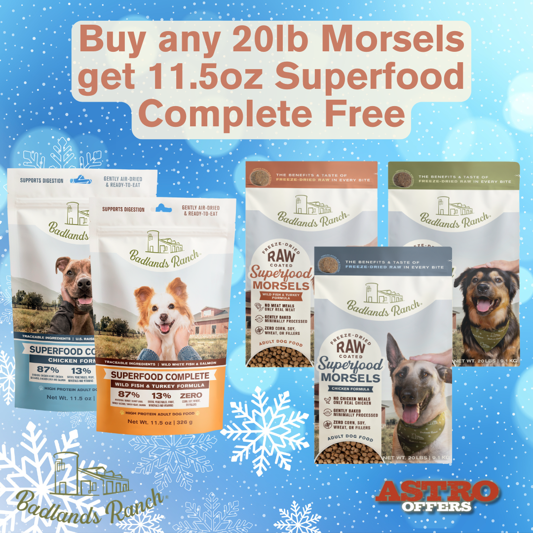Badlands Ranch FREE 11.5oz Superfood Complete with 20lb Superfood Morsels Purchase! | |